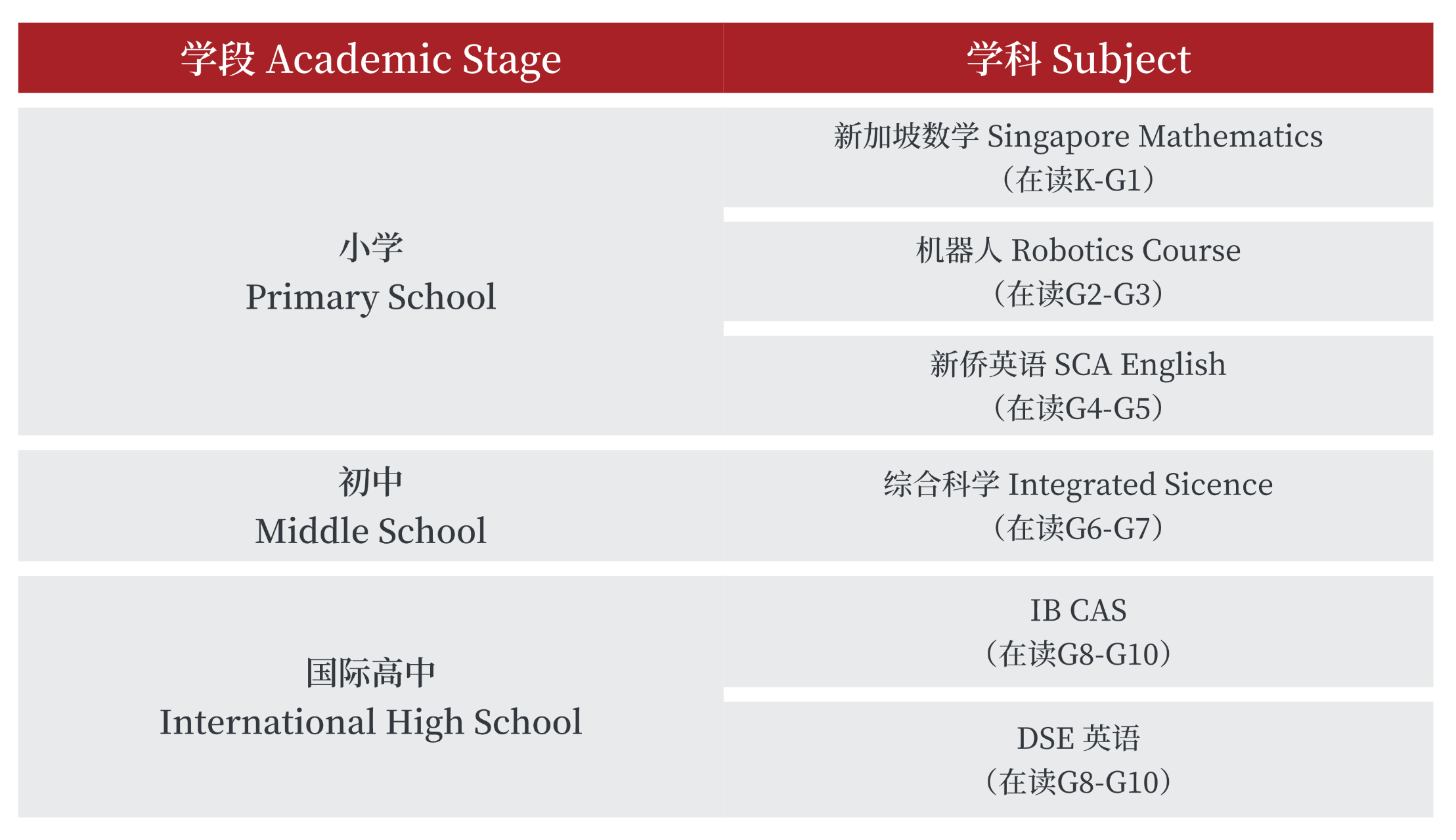 小學(xué):新僑的中新融合課程在小學(xué)階段的落地? 初中:國(guó)際初中階段,新僑雙語源流與全英源流怎么選擇? 高中:從國(guó)家課程轉(zhuǎn)軌到國(guó)際課程,新僑如何幫助學(xué)生銜接? 學(xué)生發(fā)展:新僑的 i Time 如何幫助學(xué)生培養(yǎng)自我管理能力 升學(xué)規(guī)劃:如何為未來海外大學(xué)錄取提前做好準(zhǔn)備?