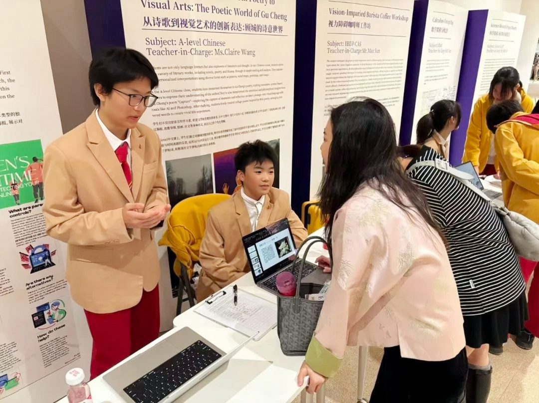 △11月周中開放日的現(xiàn)場(chǎng),學(xué)生向家長(zhǎng)介紹他們的學(xué)習(xí)成果
