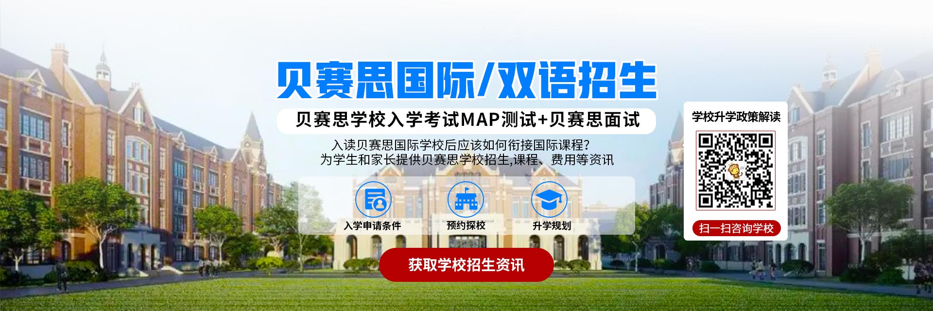 想入讀貝賽思國際學校,就需要參加他們的入學考試了,貝賽思的入學考試有一定的難度,主要由英語和數學兩部分組成,測試時長約兩個半小時,包含MAP測評考試、英語寫作和英語聽力口語。